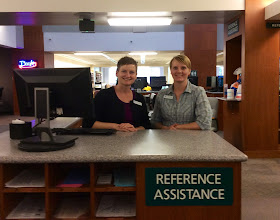 Margie Rupple and Mary Aagard waiting to assist you at the reference desk